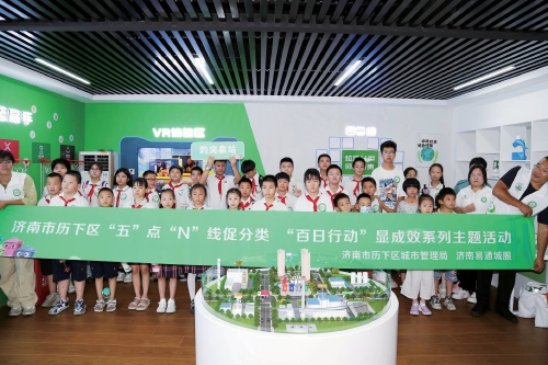 走进宣教基地,互动体验“新时尚”。在趵突泉街道垃圾分类宣教基地,讲解员向学生及家长介绍了如何正确分类可回收物、厨余垃圾、有害垃圾和其他垃圾等知识,耐心对生活垃圾的转运流程和分类后端处置流程进行详细讲解,并通过互动体验、趣味游戏等形式,让学生亲身感知生活垃圾分类的方法和积极意义;同时还鼓励大家踊跃加入“泉”心全力志愿服务团队,共同为垃圾分类贡献力量。