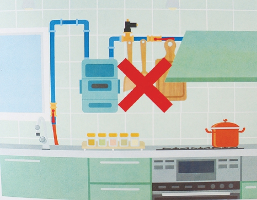 严禁在燃气设施上牵绳挂物,将燃气设施包裹、安装在密闭橱柜和吊顶中。