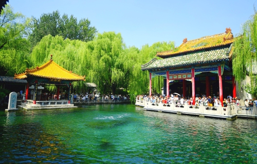 8月30日,济南趵突泉畔人头攒动,游客摩肩接踵,“趵突腾空”胜景让大家叹为观止。当日,趵突泉水位为28.92米,黑虎泉水位为28.99米,双双达到今年以来的最高值。欢涌的泉水成为初秋时节济南最美的风景。 (本报记者 崔健 摄)