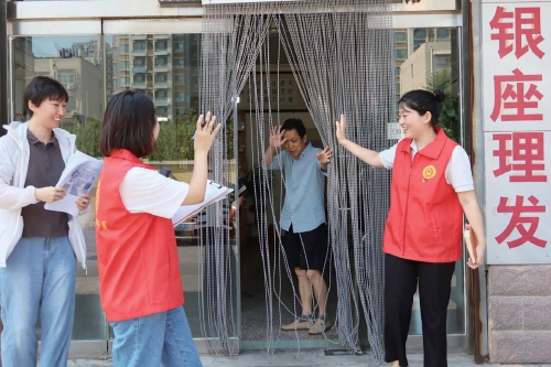 同样“移动办公”的,还有文昌街道清河街第五社区的党员们。当天,社区党支部副书记陆易和居委会副主任邵志丹穿上红色马甲,带上民情调查表,又赶往一条商业街,与沿街商户王鹏就街区环境卫生情况攀谈了起来。