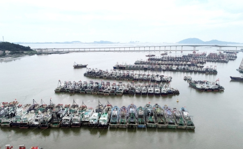 9月5日,在广东电白博贺港,渔船归港避风。当日18时,中央气象台继续发布台风红色预警,预计今年第11号台风“摩羯”将于6日下午至夜间在海南琼海到广东电白一带沿海登陆。(新华社记者 卢汉欣 摄)