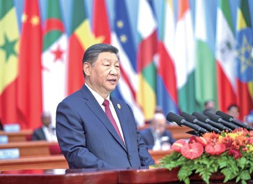9月5日上午,国家主席习近平在北京人民大会堂出席中非合作论坛北京峰会开幕式并发表题为《携手推进现代化,共筑命运共同体》的主旨讲话。 (新华社记者 李学仁 摄)
