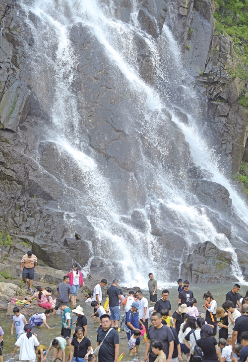 南部山区黄巢瀑布飞珠溅玉,成为市民消暑纳凉的打卡地。