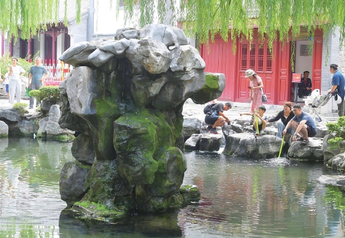 9月8日,在五龙潭公园内,不少市民赶来关注“复苏”的月牙泉。目前趵突泉地下水位达到29米,月牙泉泉池中央的蘑菇云石四周已经被泉水浸润,细流从顶部缓缓流下,相信“月牙飞瀑”景象将会重现。 (本报记者 崔健 摄)