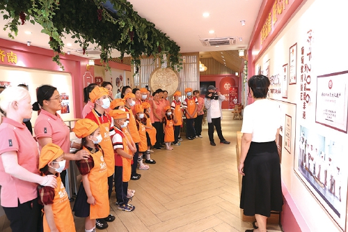 9月9日(农历八月初七),来自济南市儿童福利院的部分孤残儿童在“妈妈”们的带领下,来到益康糕饼文化体验馆,参观了解益康“葡萄软月”制作技艺,并在糕点师的指导下,自己动手,用多种不同的馅料制作出形状、图案不一的月饼。看着自己的劳动成果,孩子们开心不已。他们吃着自己亲手制作的月饼,甜在嘴里,美在心里,欢欢乐乐迎中秋。