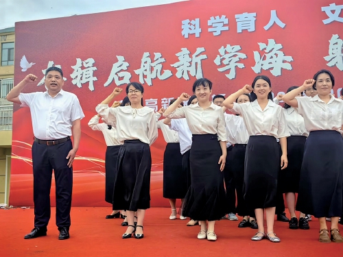 刘茂雷带领老师宣誓。以德育人打造开放多元的教育场域