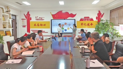 王洪山为老师们讲解课题研究。创立极具特色教研模式引领教师快速成长