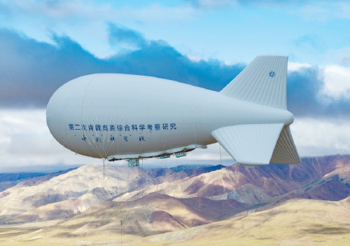极目一号Ⅰ型浮空艇在西藏双湖升空观测(无人机照片,9月2日摄)。