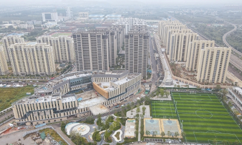 近日,在王府庄车辆段租赁住房项目建设现场,目前楼体外墙外饰面、室外管网、小区内道路硬化已施工完成,室内初装修基本完成,正在进行最后的精装修和小区绿化等工作,预计今年12月可实现交付。据了解,该项目是山东首个建在轨道交通车辆段上的钢结构装配式保障性租赁住房,建设规模为9栋住宅楼、1栋配套商业及其他配套设施,总建筑面积12.3万平方米,共1647套,提供35、60和90平方米等多种面积户型,主要面向我市“新市民”、青年人提供保障性租赁服务。(本报记者 崔健 摄)