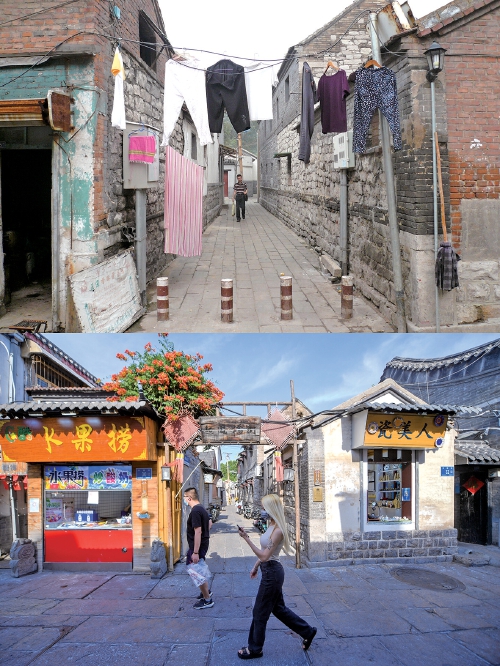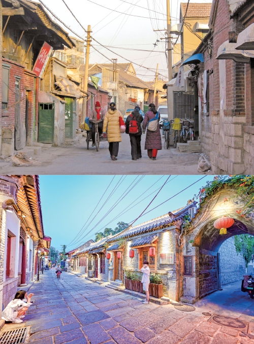 说起老济南最有名的街巷,最常提起的就是芙蓉街、曲水亭街、后宰门街、东花墙子街,每逢节假日,街巷里就挤满了游客。这些小街巷原来都是水泥低洼路段,每逢降雨都会出现积水。随着明府城片区改造提升,老街巷重新铺设了石板路,对沿街老房子和牌坊进行了复古改造,增加了砖雕石刻等装饰,将原有墙皮打磨掉,砌上了复古的灰砖、青石,临街窗户统一为复古的原木色调,地板也更换为青石板,整体外观与老城墙色调风格统一,变成了古韵味十足的老街。不少原来作为居住的沿街房屋逐步改成了商用,或是咖啡休闲小馆,或是特色民宿,充满了文艺气息。不少小商铺门头各具特色,经营济南传统小吃油旋的店面位于百年老门楼旁,悬挂着木制牌匾,传统气息浓郁;经营传统鲁菜的商铺门前栽种了数十棵荷花,碧荷间红灯笼高挂,展现出泉城市花的独有韵味,成为外地游客网红打卡地。还有些老街巷在城市拆迁中保留原址,成为了公园景区里的景观之一,原有的老石板路加以整修后,融入了园林景观中。(王锋 摄影报道)