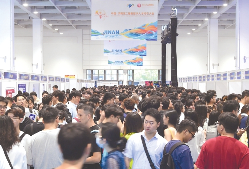 9月20日,应聘者在“天下泉城聚天下英才”中国·济南第二届高层次人才招引大会现场进行咨询。当日,中国·济南第二届高层次人才招引大会在山东国际会展中心启幕。据了解,本届大会组织了2000家以上国有企业、驻济高校、科研院所及新型研发机构、医疗机构、金融机构、事业单位及其他优质企业等各类用人单位参加,设置省市重点项目招引专区、高端职位专区、博士招引专区、海外人才招引专区、事业单位招引专区、国有企业招引专区等17个招引专区,提供职位约3万个,为海内外人才创造更多机遇,搭建更广舞台,展现更大诚意。(本报记者 崔健 摄)