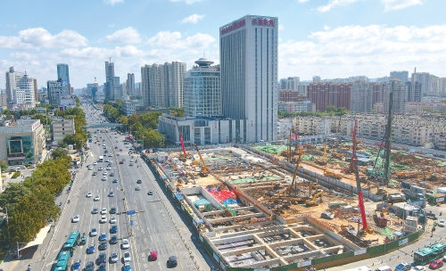 据了解,市立五院站沿经十路东西向布置,车站总长188.4米,标准段宽23.3米,为地下两层岛式站台车站。截至目前,轨交4号线全线33座车站已全部实现进场,其中27座车站实现主体结构封顶,6座车站处于主体结构施工阶段。 (本报记者 崔健 摄)