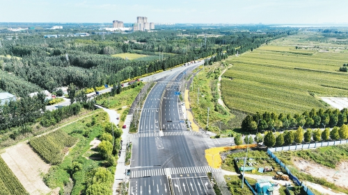 9月24日,在天桥区桑梓店街道辖区内梓东大道南段东侧,长约1170米的梓弘街沥青路面铺设和交通设施安装全部完成,已经实现双向八车道通车。梓弘街东起309国道,西至梓东大道,道路宽约50米。道路开通后,309国道与梓东大道之间又多了一条连接通道,有效缓解了309国道与梓东大道路口的交通压力。(王锋 摄)