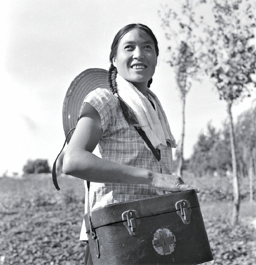1972年,济南唐王公社柴家大队赤脚医生胡秀叶出诊中。
