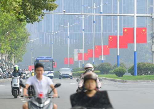 9月26日,经十路沿线悬挂起了鲜艳的五星红旗,热烈庆祝新中国成立75周年。随着国庆节的临近,经十路、旅游路等主次干道相继开始披上“中国红”,烘托国庆氛围、表达爱国情怀的街头小景和装饰也日渐增多,将城市包裹在浓浓的节日气息中。 (本报记者 崔健 摄)