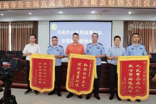 为充分展现“夏季行动”战果,彰显公安机关打击违法犯罪的坚定决心和必胜信心,9月25日上午,市公安局直属支队举行涉案赃款财物发还仪式。仪式现场,直属支队收到受害保险公司、受害群众送来的写着“人民警察为人民热心帮助暖民心”等内容的锦旗4面。