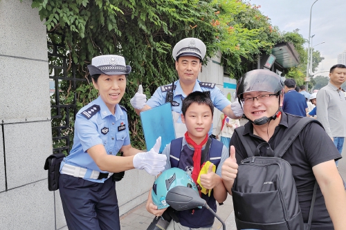 “警校家‘三长护学’机制,就是让交警队长、校长、家长等三方共同发力,通过微信群等渠道加强和学校、家长的沟通,推送交通安全警示内容,形成整治+劝导+宣传的合力,来提升头盔佩戴率。”历下交警大队副大队长孙凌云告诉记者,历下交警大队推出多项举措来推进警校家“三长护学”头盔佩戴宣传周活动。