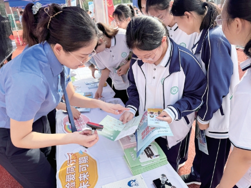 宝华中学操场上的普法科普展位前,吸引了一群怀揣着好奇的热情的同学们,从《九部的检察官》到《第二十条》,从预防校园欺凌法治课到模拟检察听证法治研学,从《“天天向上”法治小课堂》到“天天向上”文创产品,同学们积极踊跃地进行提问,检察官也细致耐心地予以解答。活动中,天桥区检察院“青未了·天天向上”未检工作室的检察官们为参加活动的同学们精心准备了法律知识问答手册和相关文创产品,受到了学校师生的一致好评。