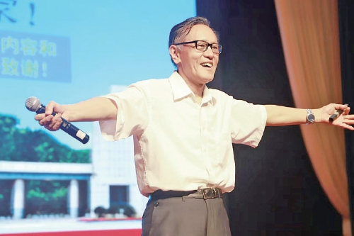 山东大学教授姜伟光在天桥区宝华中学作《科技强国与大国重器—“两弹一星”精神永存》科普报告。