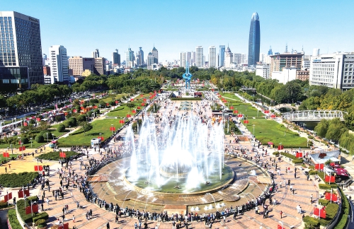 10月2日,市民游客在泉城广场、大明湖、芙蓉街乐享假日。(本报记者 崔健 摄)