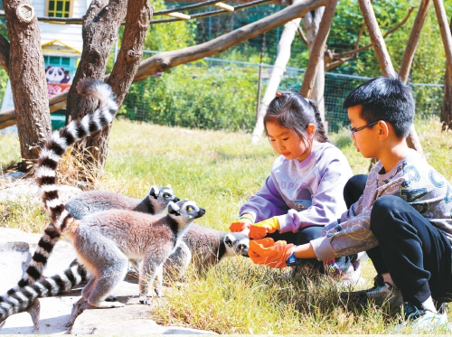 秋高气爽,期待已久的国庆假期来临,游客出游热情高涨。济南野生动物世界凭借丰富的动物种群以及精彩演艺,吸引了众多家庭前来打卡体验。 (本报记者 刘烨 摄)