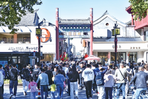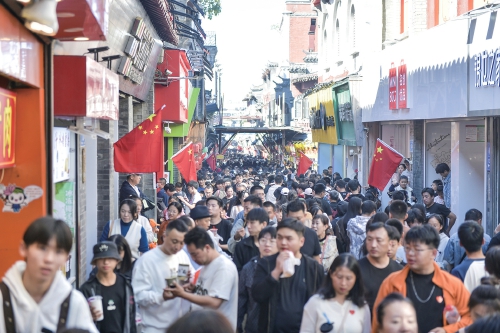 国庆假期,泉城各个景区景点和商圈美食街都迎来旅游高峰。在老城区的芙蓉街,汇聚了各类美食,市民游客闻香而来,开启“逛吃模式”。432米的芙蓉街内,商户的叫卖声、游客的喧闹声不绝于耳,爆肚、烤猪蹄、烤生蚝、生煎包等各色美食吸引了大量游客。(王锋 摄)