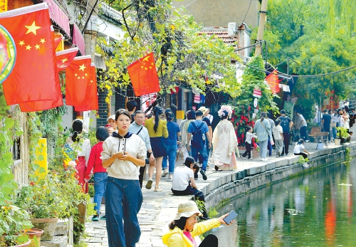 10月6日,济南百花洲历史文化街区游人如织。(本报记者 崔健 摄)