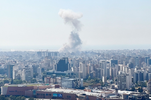 这是10月8日在黎巴嫩首都贝鲁特南郊拍摄的以军空袭后产生的浓烟。(新华社/法新)