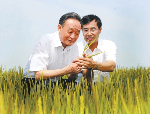 2012年7月19日,吴邦国同志在黑龙江农垦建三江管理局二道河农场万亩大地号察看水稻长势。(新华社记者谢环驰 摄)
