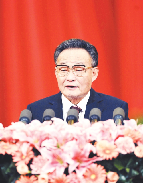 2002年11月,吴邦国同志在中共十六届一中全会上当选为中央政治局委员、常委。2003年3月,在十届全国人大一次会议上,他当选为全国人民代表大会常务委员会委员长,同月任全国人大常委会党组书记。2007年10月,他在中共十七届一中全会上再次当选为中央政治局委员、常委。2008年3月,在十一届全国人大一次会议上,他再次当选为全国人民代表大会常务委员会委员长,同月任全国人大常委会党组书记。他认真贯彻落实党中央决策部署,坚持正确政治方向,依法履行职责,不断增强工作实效,进一步丰富和发展人民代表大会制度的理论和实践,为发展社会主义民主、健全社会主义法制作出重要贡献。他强调,发展社会主义民主政治,必须把坚持党的领导、人民当家作主和依法治国有机统一起来,坚持和完善人民代表大会制度这一根本政治制度,必须坚持党的领导,决不能削弱党的领导、脱离党的领导、放弃党的领导,决不能搞西方那种多党制、议会制,中国对自己选择的政治发展道路要理直气壮地宣传,坚决抵制各种错误思潮影响。