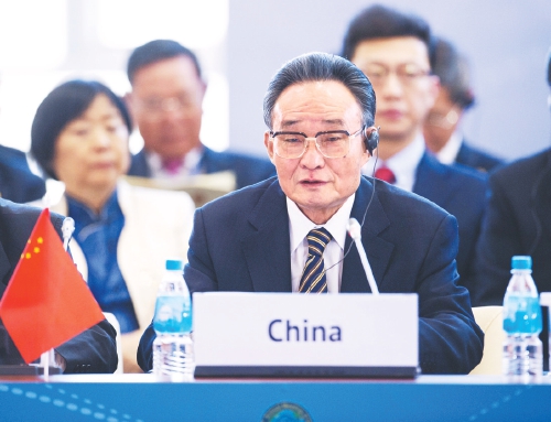 2013年1月28日,吴邦国同志在俄罗斯符拉迪沃斯托克出席亚太议会论坛第21届年会,并作题为《坚持和平发展 促进合作共赢》的主旨发言。(新 华社记者 王晔 摄)