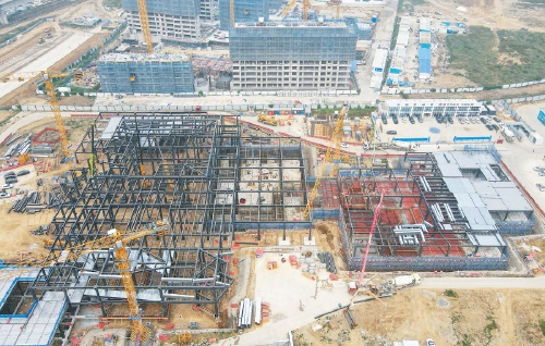 10月16日,在济南大辛庄考古遗址公园项目(一期)建设现场,遗址博物馆主体施工在有序进行中。目前,大辛庄考古遗址公园种植土回填及雨污水管线施工已完成,公园轮廓初现。据了解,大辛庄考古遗址公园位于奥体中路以西、铁厂北路以南、胶济铁路以北,项目总占地约677亩。大辛庄考古遗址公园先行开工区域总占地172亩,包含大辛庄考古遗址博物馆和公园区域。大辛庄考古遗址公园整体规划为“一馆五区”的空间格局。“一馆”是指遗址博物馆,作为公园的核心区域,遗址博物馆总建筑面积高达2万平方米,建成后将珍藏并展示大量珍贵的商代文物,让游客近距离感受商代文明的独特魅力。“五区”分别为历史模拟展示区、遗址现场展示区、遗址环境展示区、考古科普体验区及功能服务区,集文物保护、科研教育、休闲游憩、文化娱乐于一体,充分展示大辛庄遗址的历史背景和文化内涵。建成后,大辛庄考古遗址公园将成为济南主城区首座以商代遗址为主题的公园。 (本报记者 崔健 摄)