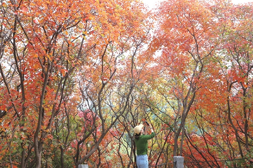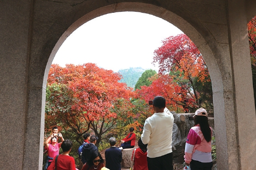 10月17日,众多市民游客来到济南南部山区的红叶谷登高赏秋观景。时下,红叶谷内红、黄、绿相互交织浸染,色彩斑斓,如童话梦境般多姿多彩。市民游客或登万叶塔远眺,或体验高空激情漂流、丛林极速滑道、树屋民宿,或在绚秋湖上划船荡舟……休闲放松,尽享难忘的秋日时光。趁着秋高气爽、风光正好,快来红叶谷打卡赏秋吧,与秋日画卷融为一体,定会让你留下美好回忆。(本报记者 张宪政 通讯员 李煜 摄)
