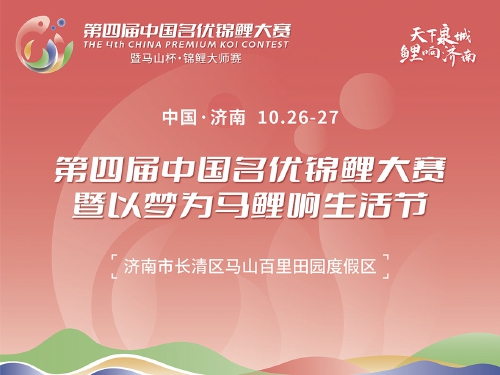 金秋送爽,丹桂飘香;天下泉城,“鲤响”济南。10月26日至27日,由中共济南市委宣传部、济南市农业农村局、济南市文化和旅游局、济南市长清区人民政府、济南城市投资集团有限公司、济南日报报业集团联合主办的第四届中国名优锦鲤大赛暨马山杯锦鲤大师赛将在长清区马山百里田园度假区盛大举行。济南泉水享誉全球,而与泉水相伴相生的锦鲤,以其优雅端庄完美契合这座城市的灵动特质。届时,一场由泉韵与锦鲤巧妙相融的中国顶级锦鲤赛事将为广大市民游客带来一场美妙的视觉盛宴。
