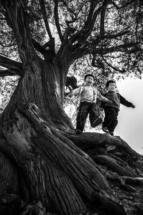 摄影家钱捍特别喜欢孩子,他常常被孩子清澈的目光、透明的心灵所吸引。其代表作,无论是《身残与心残的撞击》、30年持续跟踪的四胞胎故事,还是《山里的孩子》《初次登台》,都是他保持一颗童心的佐证。稚嫩的面庞、青涩的举止、顽皮的笑容,遮也遮不住的蓬勃生命力,是赤子的徽章。钱捍也是一个赤子,他身上好像装着一部“永动机”。他永远在动、永远在拍,在用相机体验人生、沉潜涵泳,为之歌,为之哭,为之沉醉。