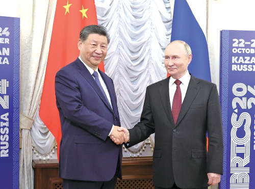 新华社俄罗斯喀山10月22日电(记者 郝薇薇 黄河)当地时间10月22日下午,国家主席习近平在喀山克里姆林宫同俄罗斯总统普京举行会晤。