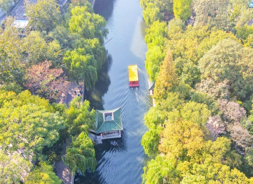 10月23日,深秋已至,护城河畔秋色无边,吸引了众多游客赏泉游玩。人们在天高云淡的秋日,漫步在护城河畔,看树叶描上了金边,看城市穿上五彩斑斓的彩衣,在潺潺流淌的泉水声中享受“慢生活”,放松身心,体味泉城秋日的诗情画意,去品读老舍先生笔下“济南的秋天”。风景如画的泉城正敞开怀抱欢迎四海宾朋。 (本报记者 崔健 摄)
