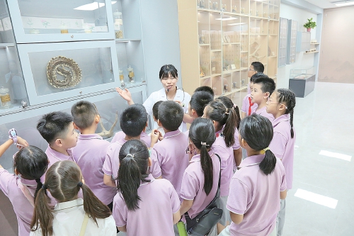 今年8月,济南市经十一路小学等多所学校的学生走进该院东院区,参加“岐黄小郎中”中医药文化夏日研学活动。他们参观中药博物馆,通过中医药文化长廊全面了解中医药文化,通过体验中药识别与香囊制作、中医养生保健体验和中医药膳食疗,深度触摸历史,感受这一传承数千年医学智慧的魅力。活动结束后,每位参观的学生均获得医院颁发的研学证书,获得“岐黄小郎中”称号。“希望你们能成为中医药的传承者、继承者、弘扬者。”工作人员说。