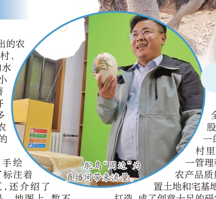 线下,“骑鸵鸟”项目成功吸引了城里不少亲子家庭来乡村观光旅游;线上,人与鸵鸟互动吸引了很多网友在直播间购买双泉镇特色农产品;没想到,一群鸵鸟,真的将资源化零为整了。