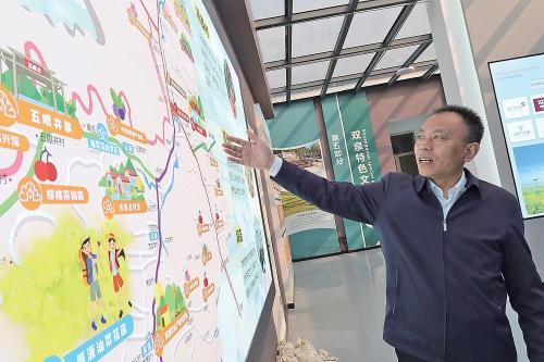 金秋的双泉镇,泉水淙淙,瓜果飘香,手持一张萌趣十足的手绘地图,看着那一个个独具特色的创意景点,记者不禁感慨:“如今的双泉,有看头,有玩头,更有奔头!”(本报记者 王飞 李冬阳)
