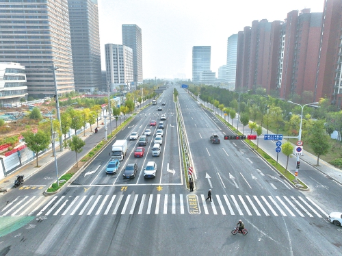 优化后的济齐路西段,交安设施更完善,市民通行更安全。(本报记者 崔健 摄)