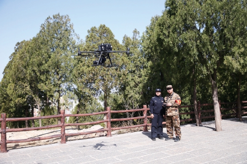 用无人机在山上巡查。
