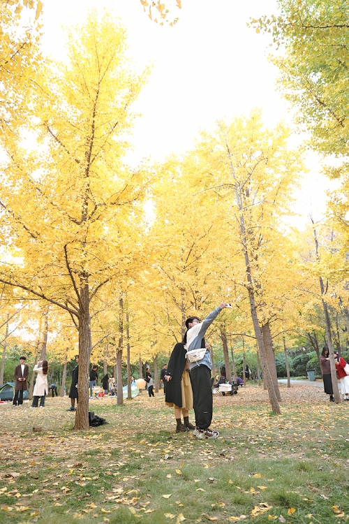 11月3日,济南森林公园的银杏林吸引众多市民游客打卡拍照。目前,公园里的银杏树纷纷换上了“金装”,迎来最佳观赏期。 (本报记者 张宪政 摄)