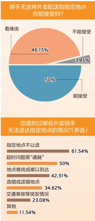 “到了联系不上客户,或者送不进去要等很久,后台上报情况就是了,不会有处罚。”外卖员小冯说,熟悉了软件之后,遇到外部因素超时的单,他再也不慌了,耐心等客户下楼,也不会影响后面的单。