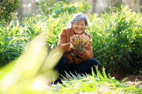11月6日,山东省临沂市郯城县郯城街道郭庄村村民在收获生姜。立冬了,各地农民抢抓农时,开展采收、播种、农作物管护等农事,田间地头一派繁忙景象。 (新华社发)