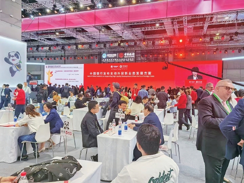 第七届中国国际进口博览会现场,中国银行为参展商提供贸易与投资对接服务。