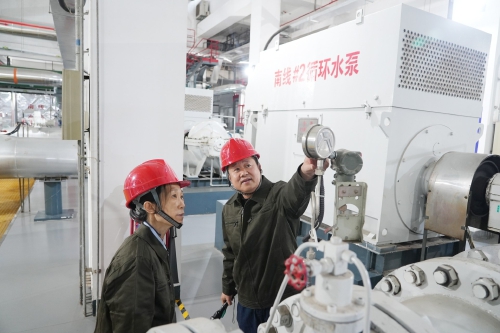 工作人员在巡检隔压站供热设备。