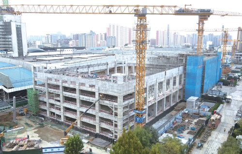 据了解,济南站增设北站房工程总建筑面积41995平方米,划分为侧站房和高架候车厅两部分,其中侧站房地下一层与既有北广场地下空间连通,高架候车厅上跨济南站10、11股道与既有高架候车厅连通。济南站是济南铁路枢纽的主要客运站,承担普速和高速客车到发作业。现有站房位于站场南侧,客流、车流相互交织,客运高峰期候车室已不能满足快速增长的旅客出行需求。北站房建成后,将缓解目前的交通压力,旅客出行体验将更舒适,同时也将促进铁路客站与城市的融合发展。(济南日报·爱济南记者 崔健 摄)