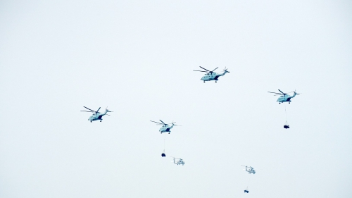 11月10日,海军舰载直升机编队在广东珠海进行适应性飞行训练。(新华社发)