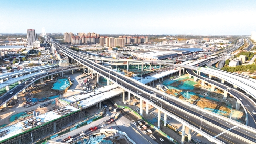 近日,在济南零点立交改造项目建设现场,新建的东西向主线桥进入桥梁浇筑阶段,多条弧形钢梁也同时进行吊装,跨越建设中的东西主线桥。